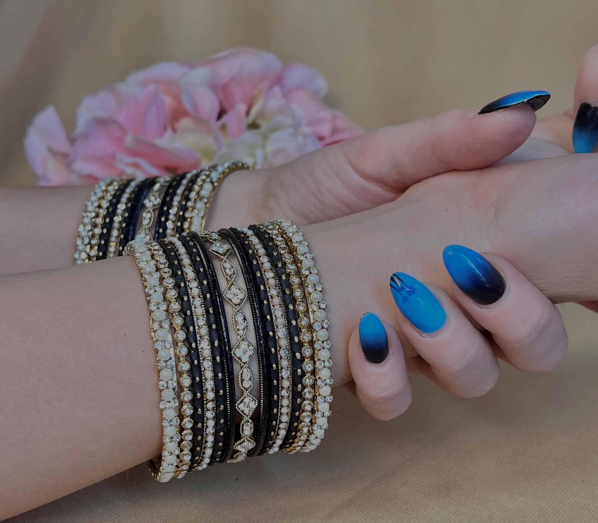Small Black Pearly Indian Bangle Set - Both Arms Indian/ Pakistani/Jewelley/ Fashion Bracelet