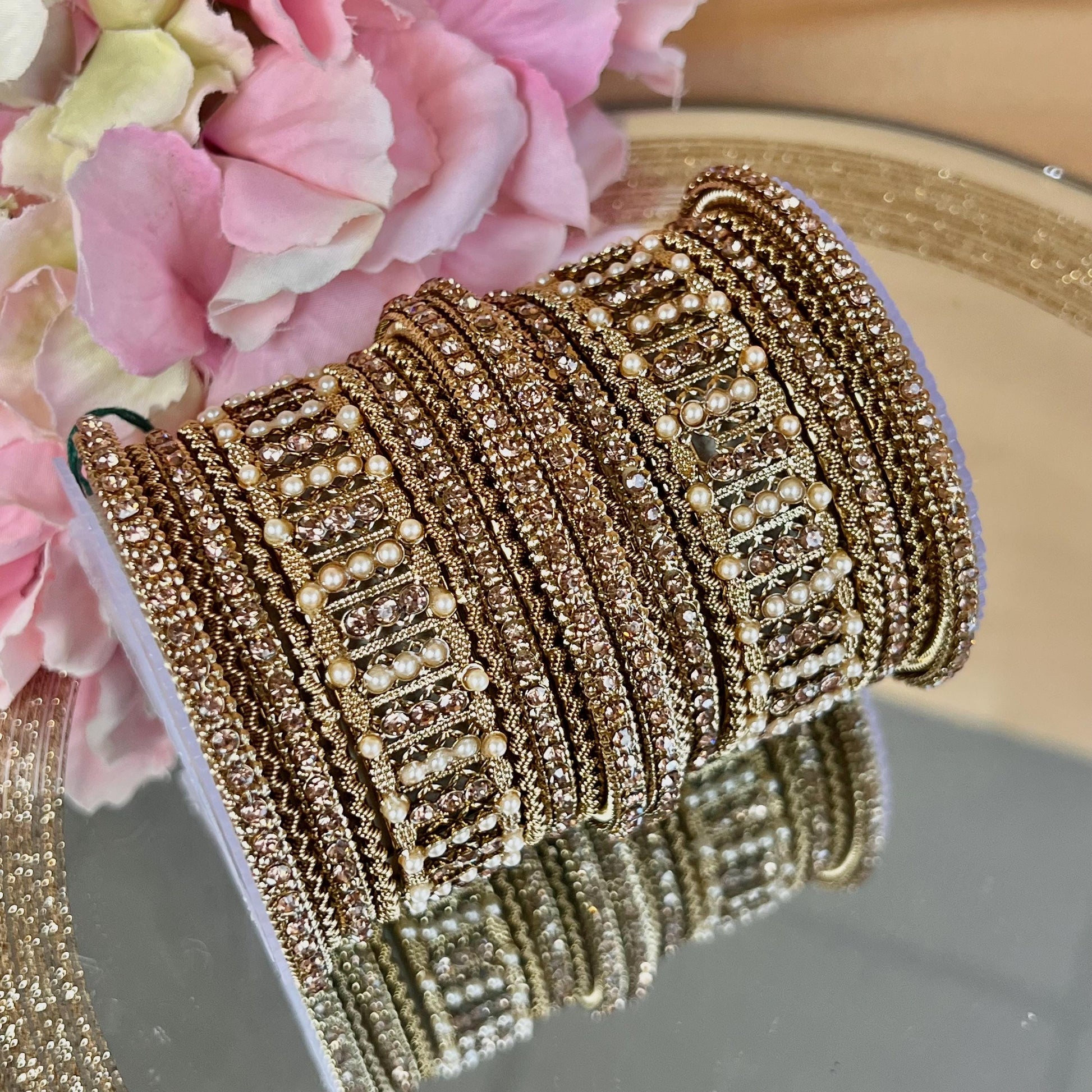 Small Golden Pearly Bangle Set Both Arms - 2.6/Indian/ Pakistani/Kada Bangle Set/Golden Bangle Set/Pearly Bangles/Fashion Bracelet