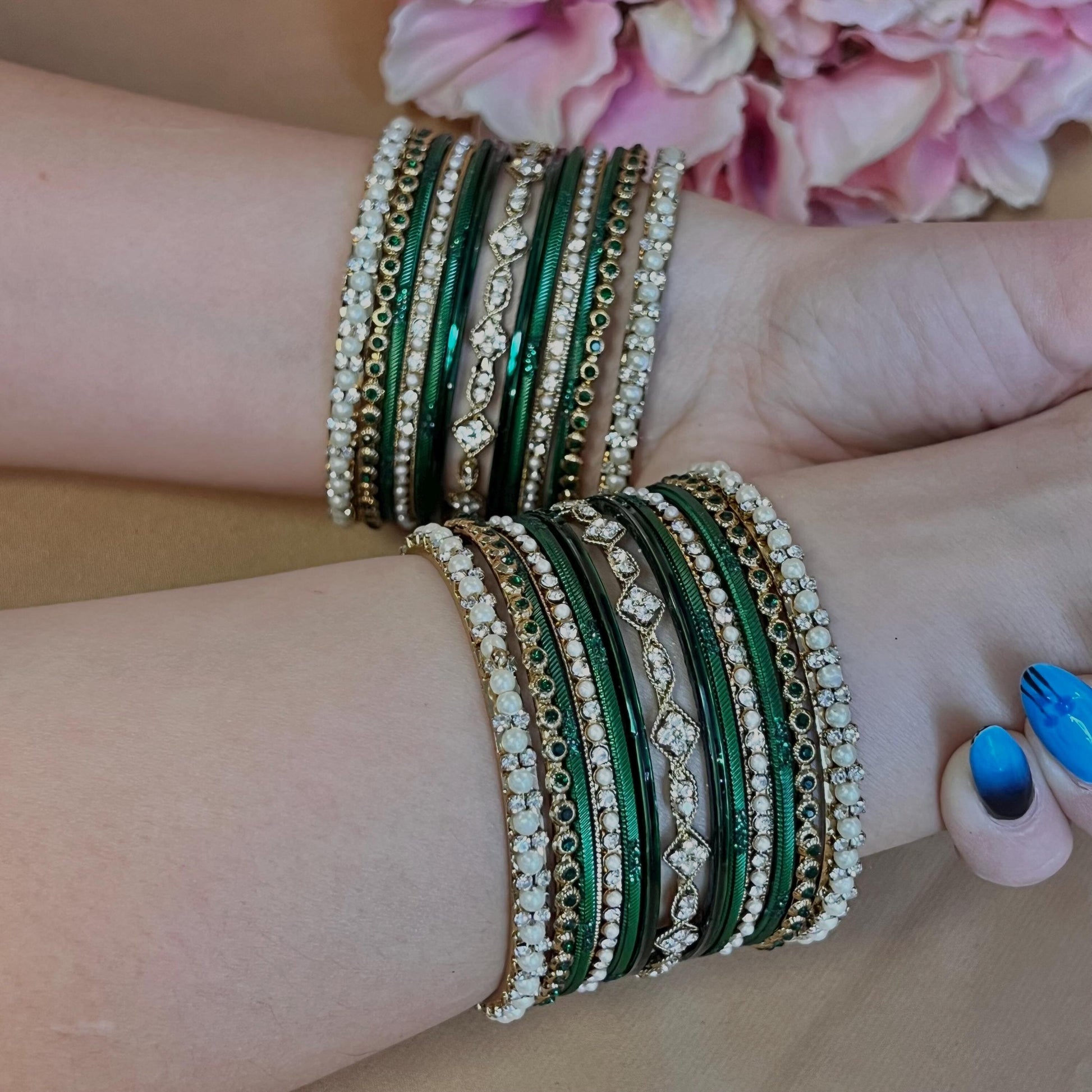 Small Green Pearly Bangle Set - Both Arms Indian/ Pakistani/Jewellery/ Fashion Bracelet