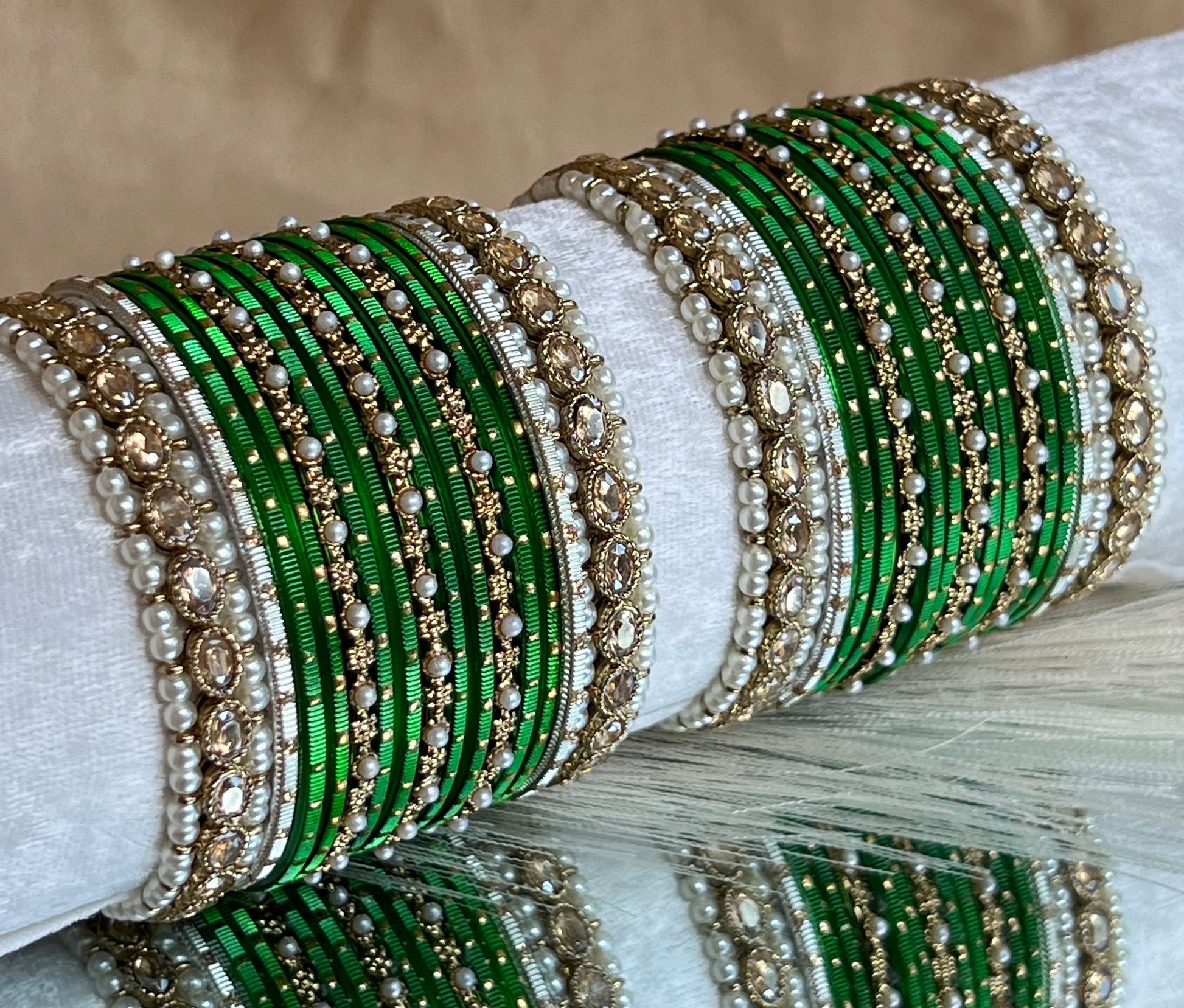 Small Green Pearly Bangle Set/Indian/ Pakistani/Jewelley/ Fashion Bracelet
