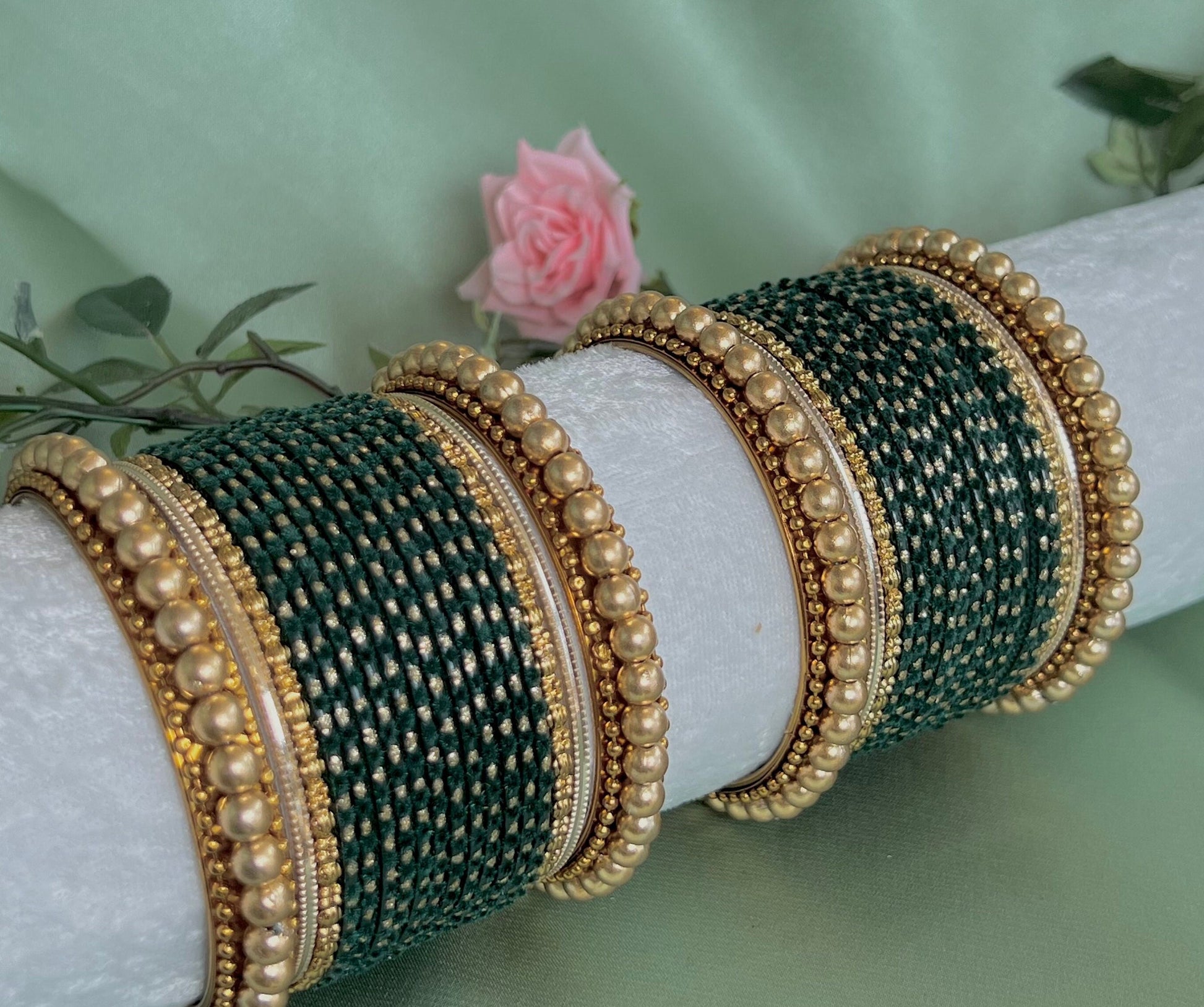 Small Green Velvet Bangle Set/Indian/ Pakistani/Jewelley/ Fashion Bracelet