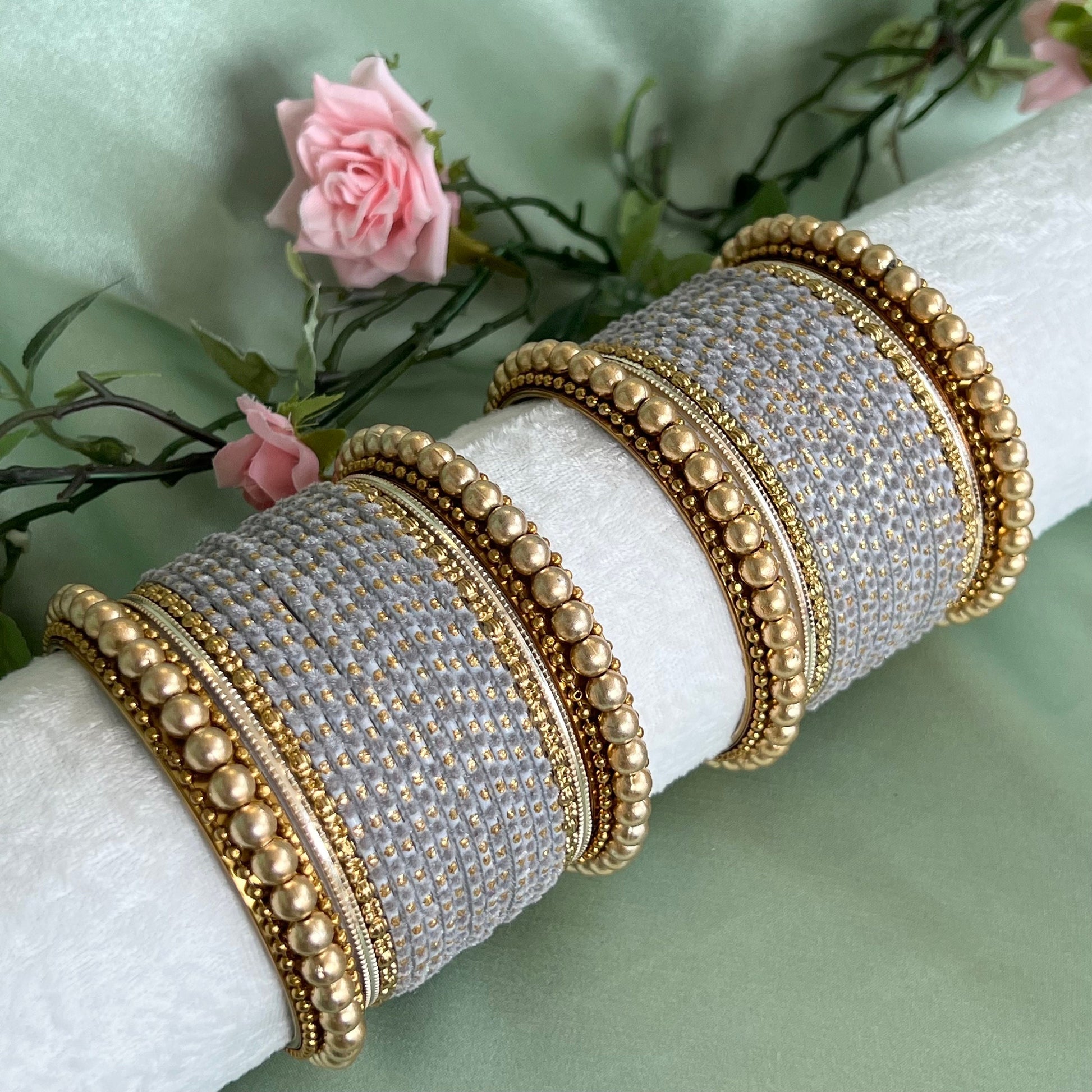 Small Grey Velvet Bangle Set/Indian/ Pakistani/Jewelley/ Fashion Bracelet