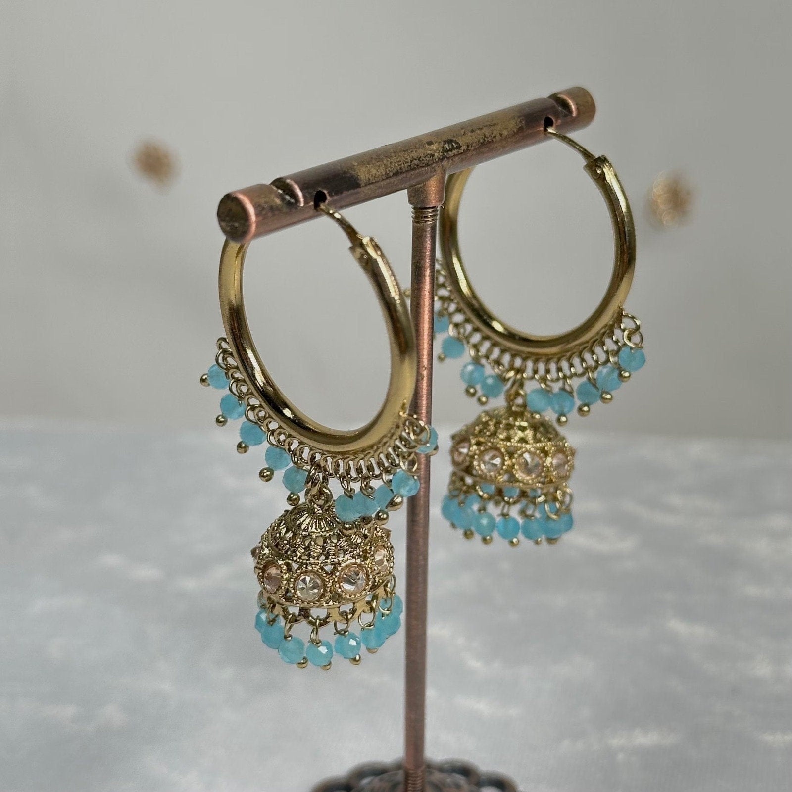 This beautiful small jhumka gold hoop earrings is designed with clear stones and it comes in 8 different beautiful colours.