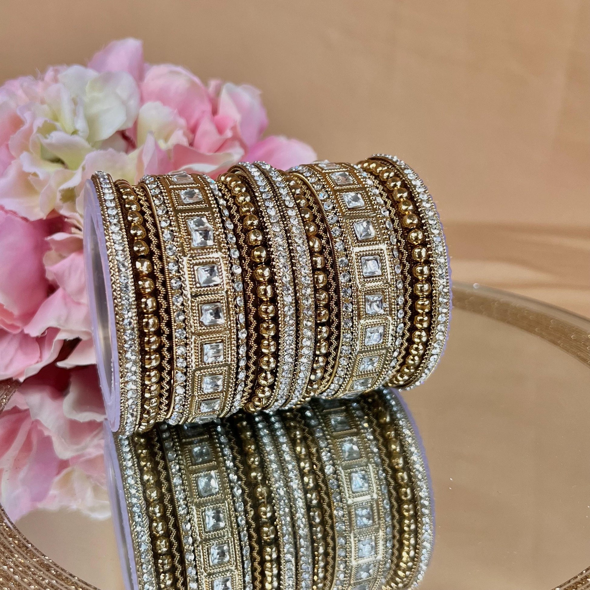 Small Mirror Golden & Clear Bangle Set Both Arms - 2.6/Indian/Clear Bangle Set/Kada Bangles/Pakistani/Jewellery/ Fashion Bracelet