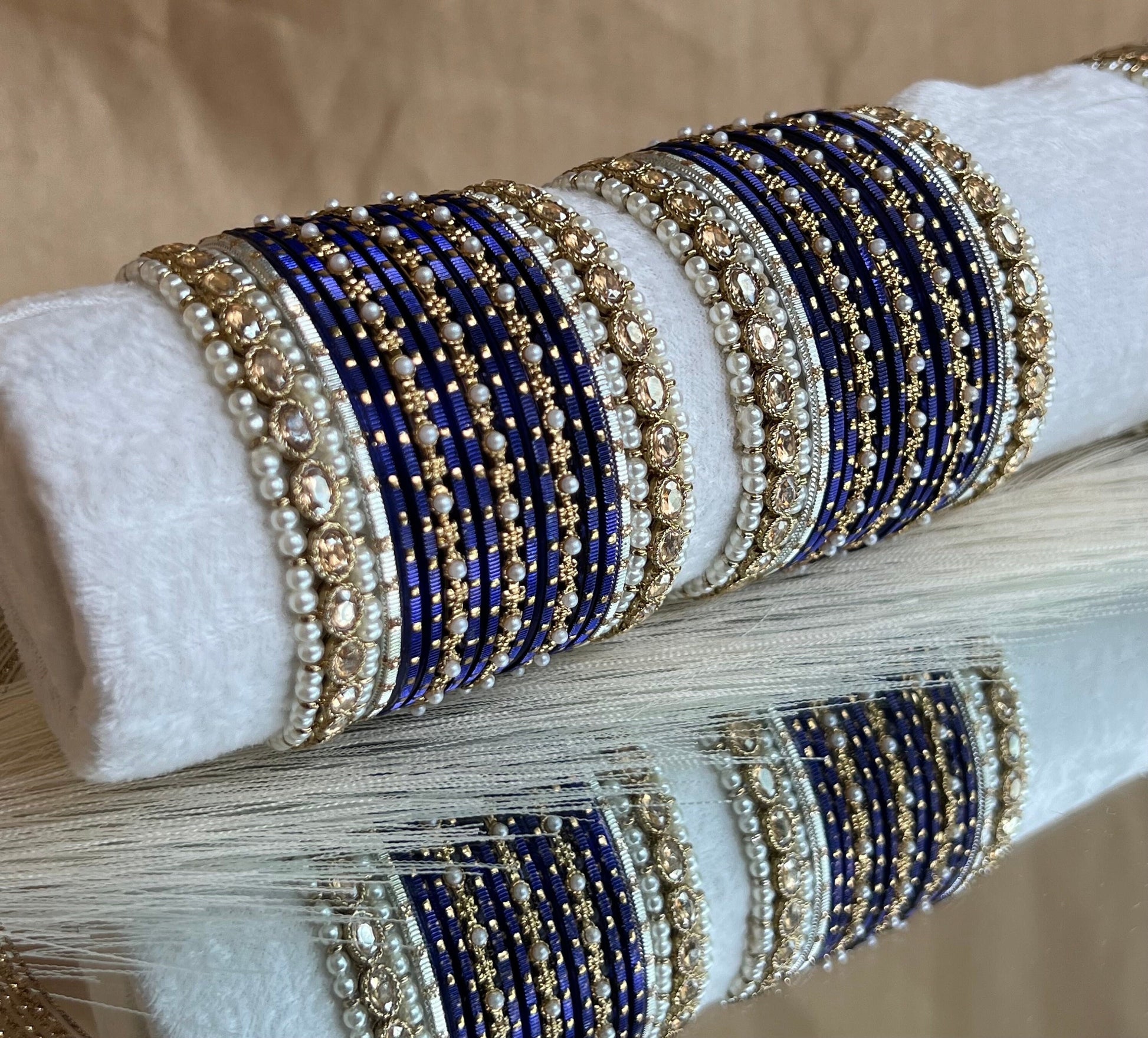 Small Navy Pearly Bangle Set/Indian/ Pakistani/Jewelley/ Fashion Bracelet