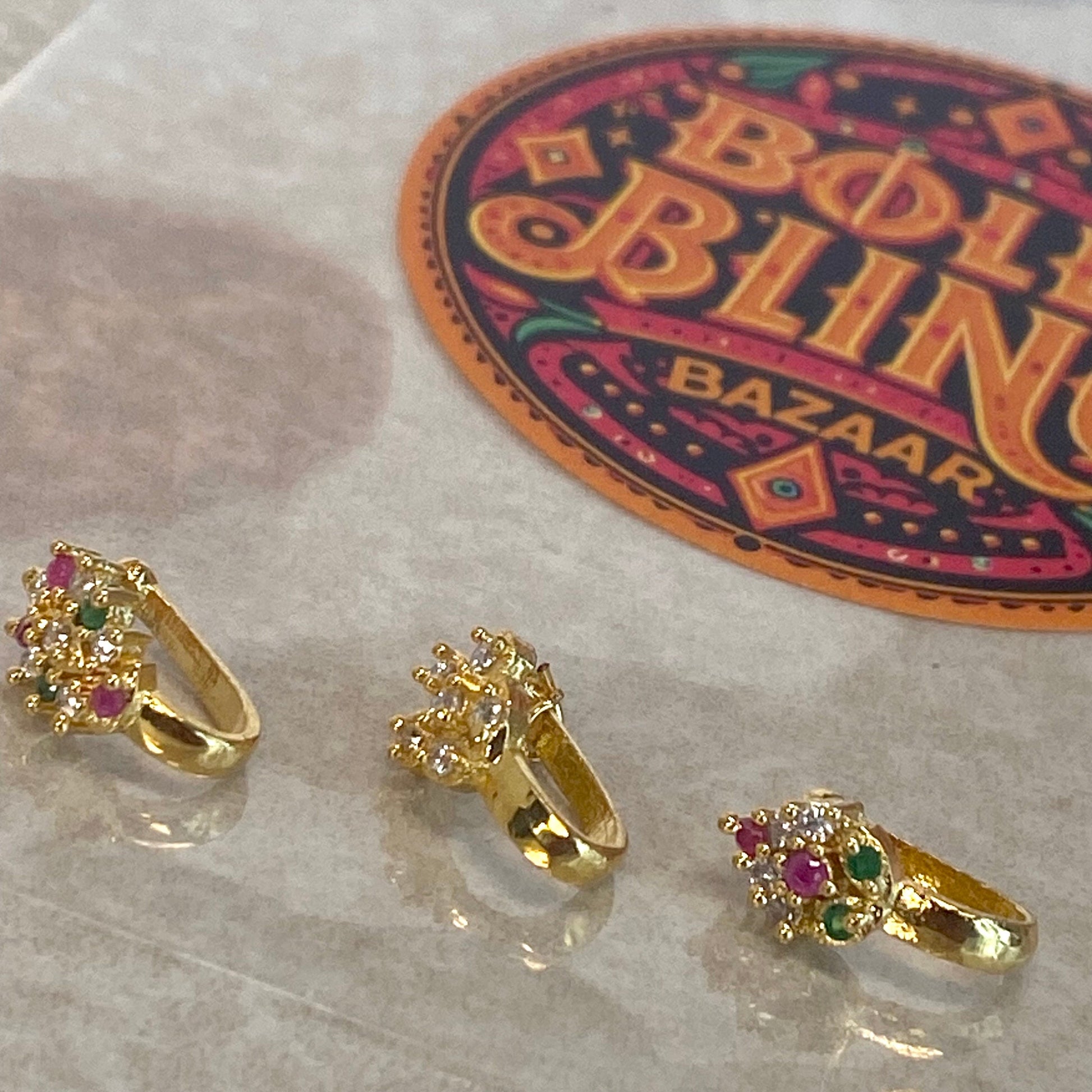 3 x Gold based nose ring (some red/ green some clear)