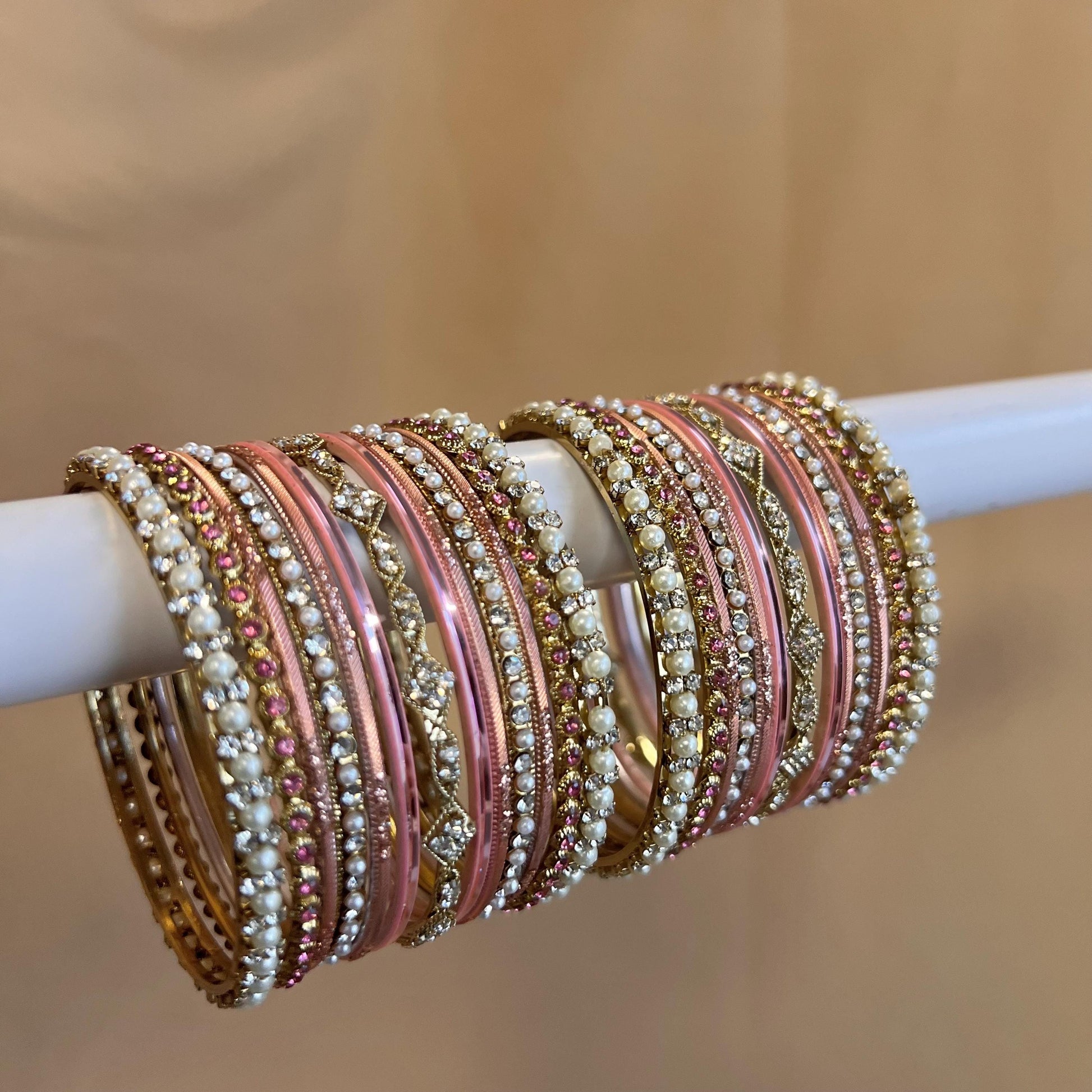 Small Pink Pearly Indian Bangle Set - Both Arms Indian/ Pakistani/Jewelley/Valentines Collection
