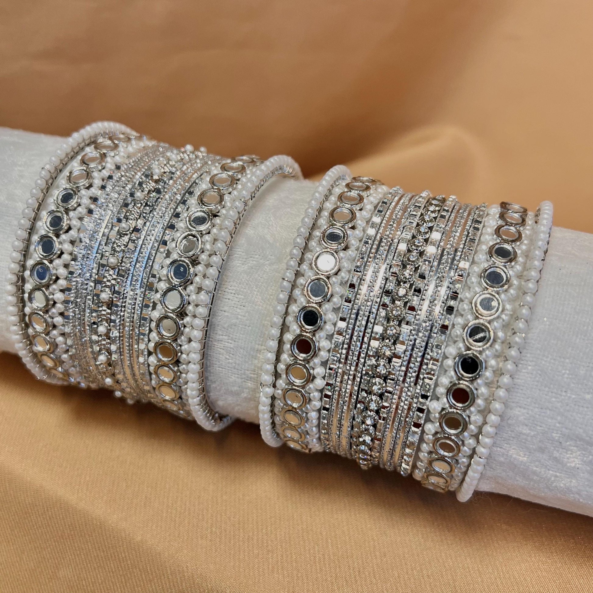 Small Silver Mirror Bangle Set/Silver Bangle Set/Mirror Bangles/Silver Bangles/ Pakistani/Jewellery/ Fashion Bracelet