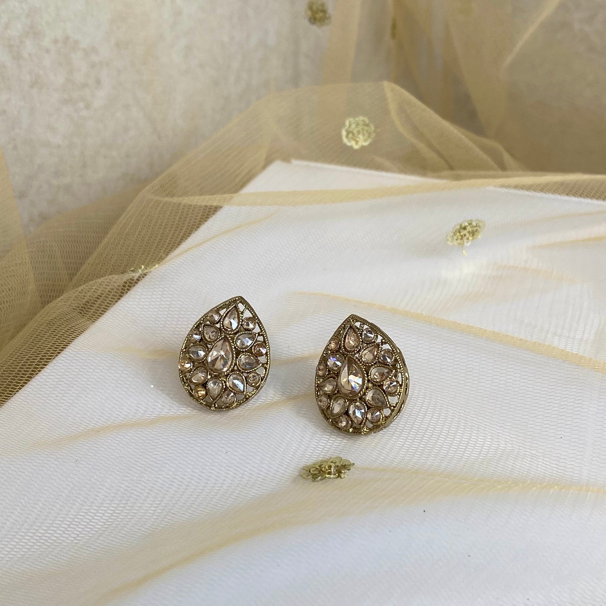 Small Stud Earrings - Champagne/ Fashion Jewellery/ Gift for Women/Indian/Pakistani style