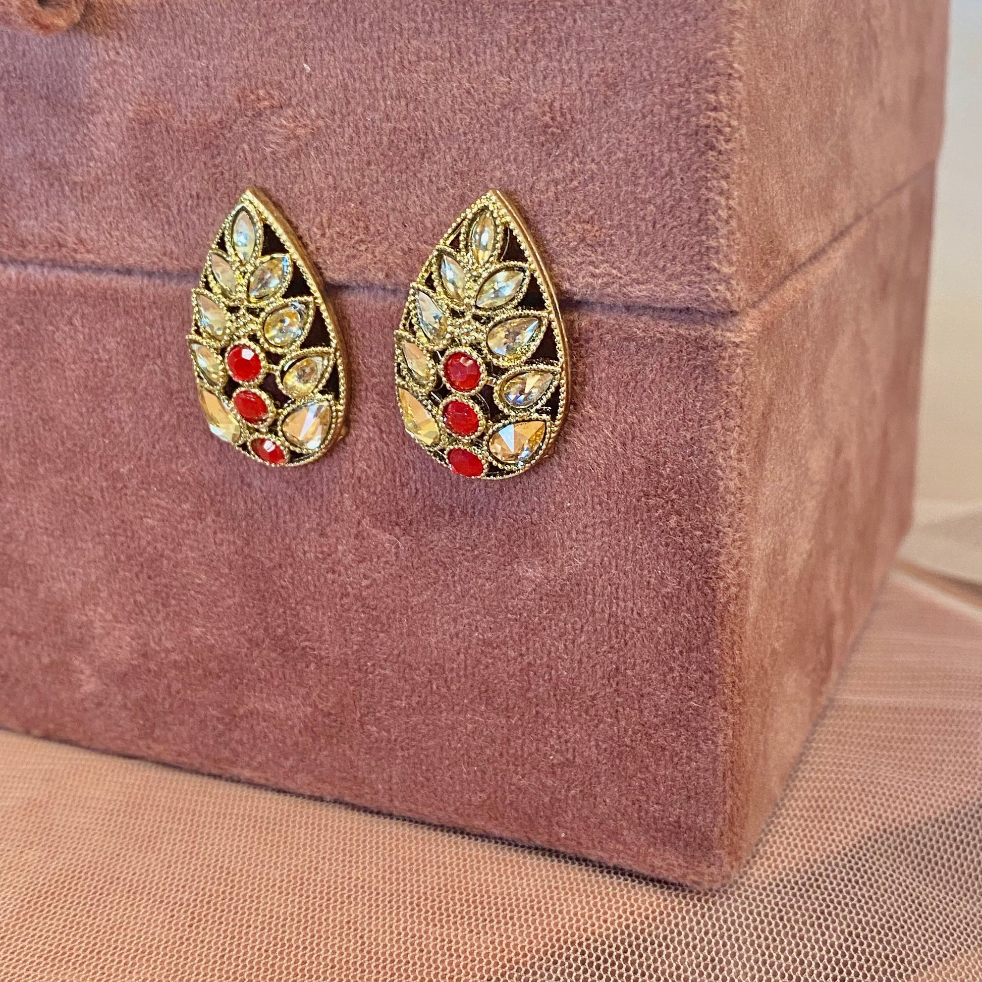 Small Stud Earrings - Red/ Fashion Jewellery/ Gift for Women/Indian/Pakistani style