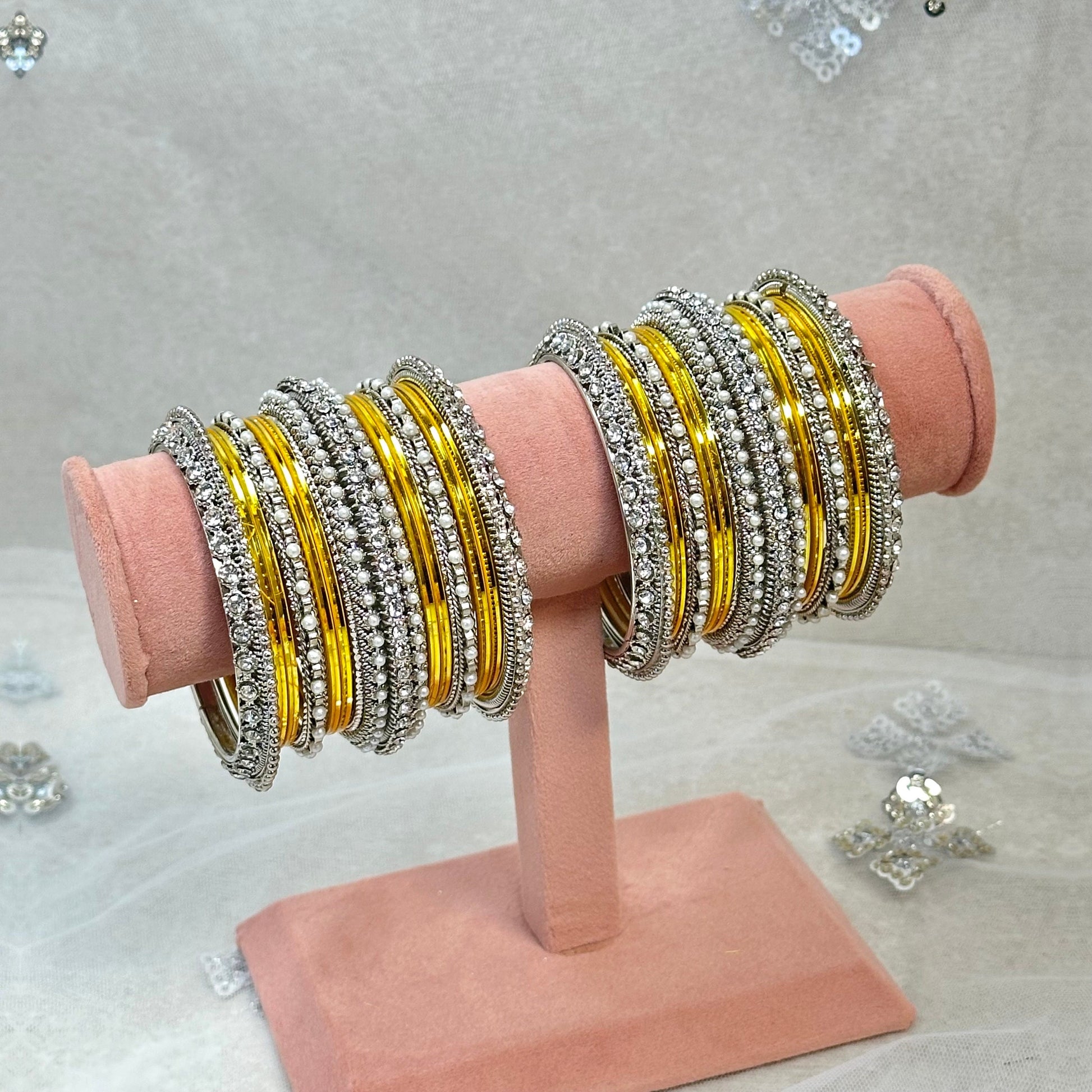 Yellow/Silver Bangle Set/Indian/ Pakistani/Jewelley/ Fashion Bracelet