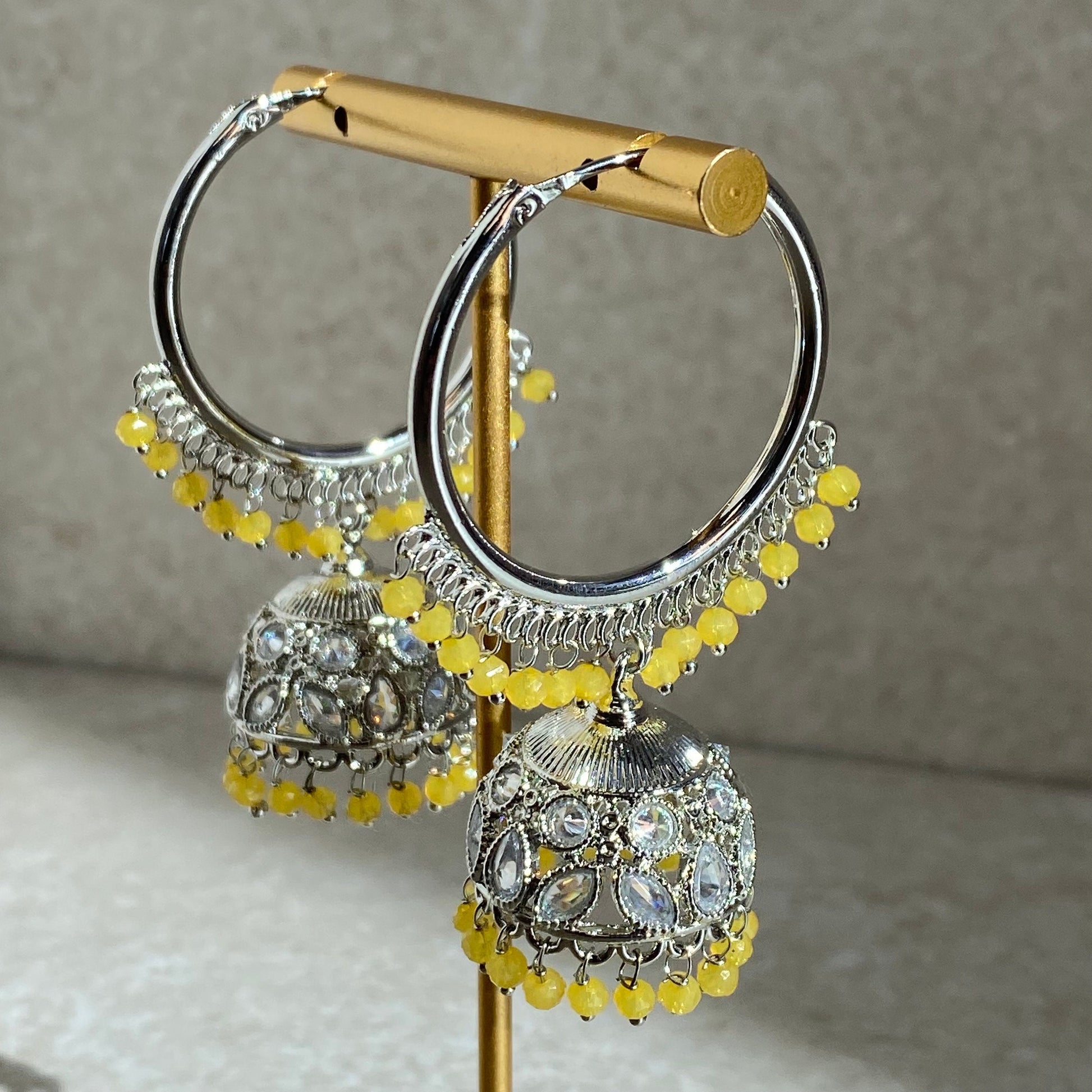 Yellow Silver Crystal Jhumka Indian Hoop Earring/Indian Earrings/Pakistani Fashion/Indian Jewellery/Silver Jewellery/Gifts for Women